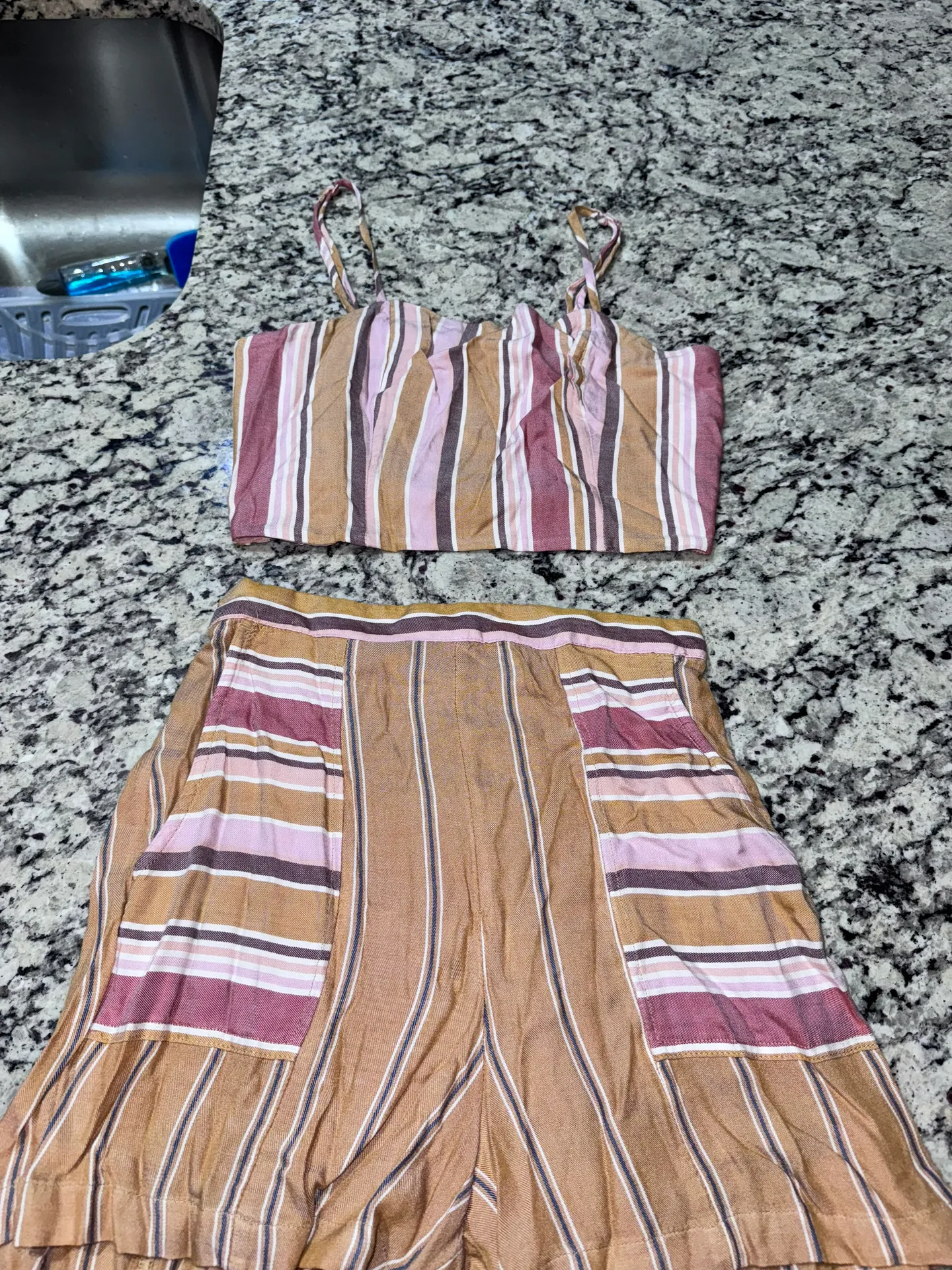 Multicolored Stripped matching short and tank set