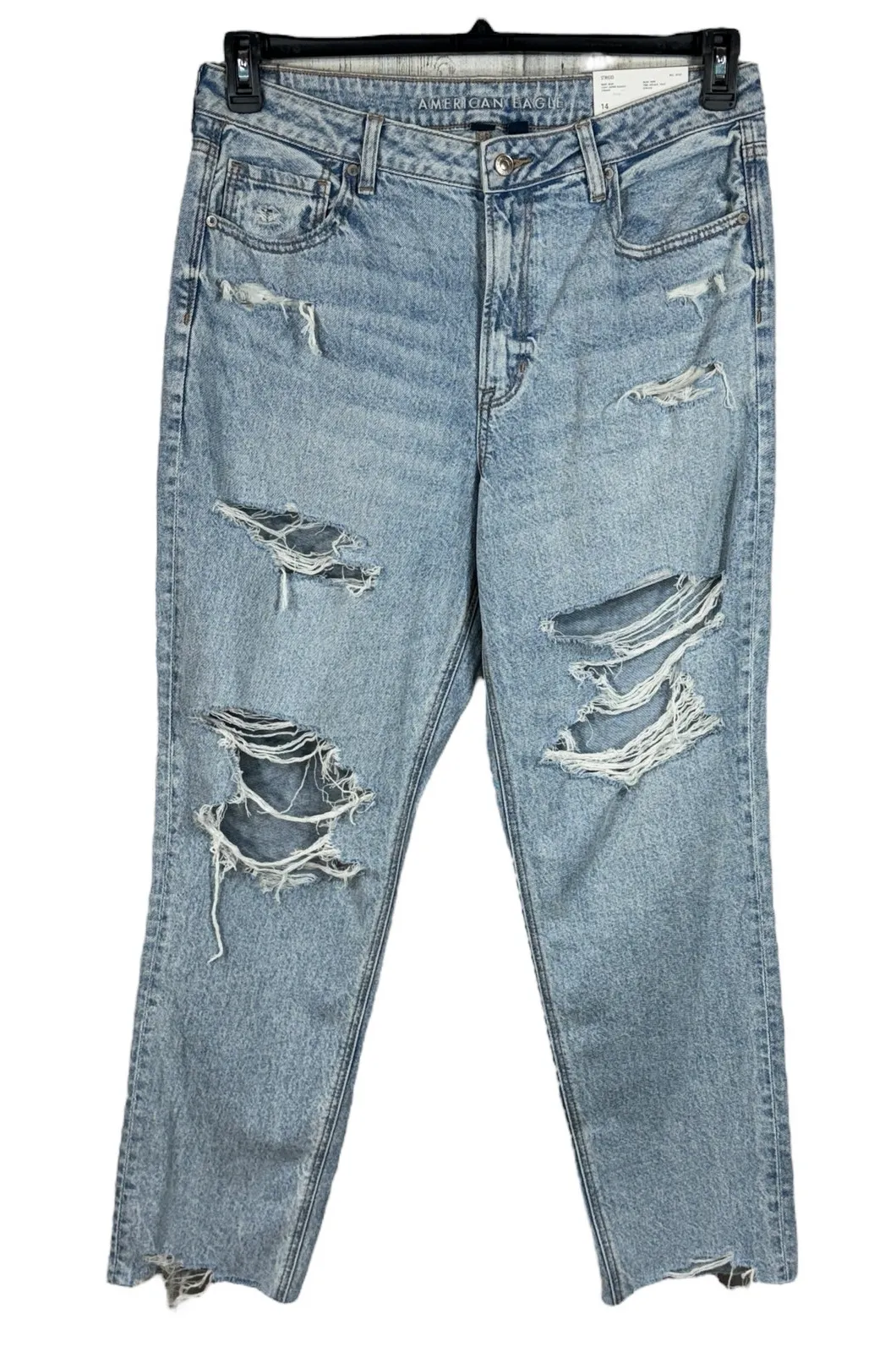 American Eagle SZ 14 Strigid Mom Jeans * Super High-Rise * Distressed / Rips * Raw, Frayed Hems... Show more