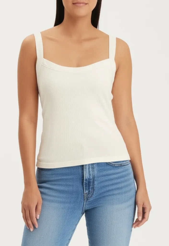 American Eagle Tank Top Womens Size XL Off White Ribbed Square Neck Stretch Casual Layering Condition: New condition. Size: XL Material: 55% Cotton / 36% Recycled Polyester / 9% Elastane Features: Ribbed knit fabric, square neckline, wide straps, comfortable stretch Measurements: See pictures. Tags: ribbed, basic, stretch, layering, minimalist, summer, essential, everyday, comfort, athleisure, versatile, solid