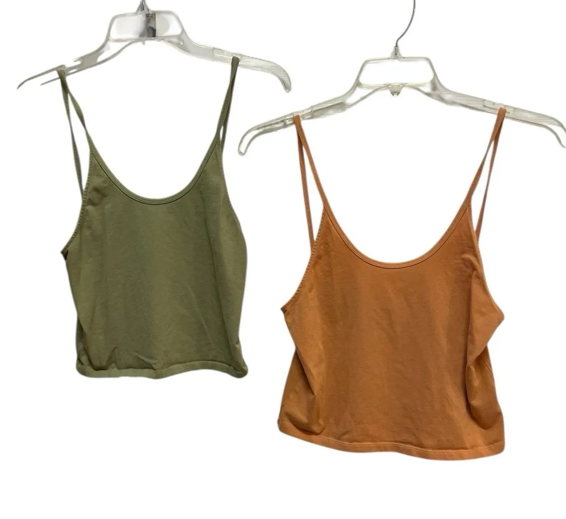 American Eagle Women's Tank Tops Set — Olive & Rust Spaghetti Strap Set of two American Eagle women... Show more