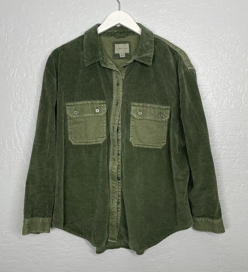 American Eagle Women M Green Corduroy and Canvas Button Front Shirt 100% Cotton Excellent used... Show more