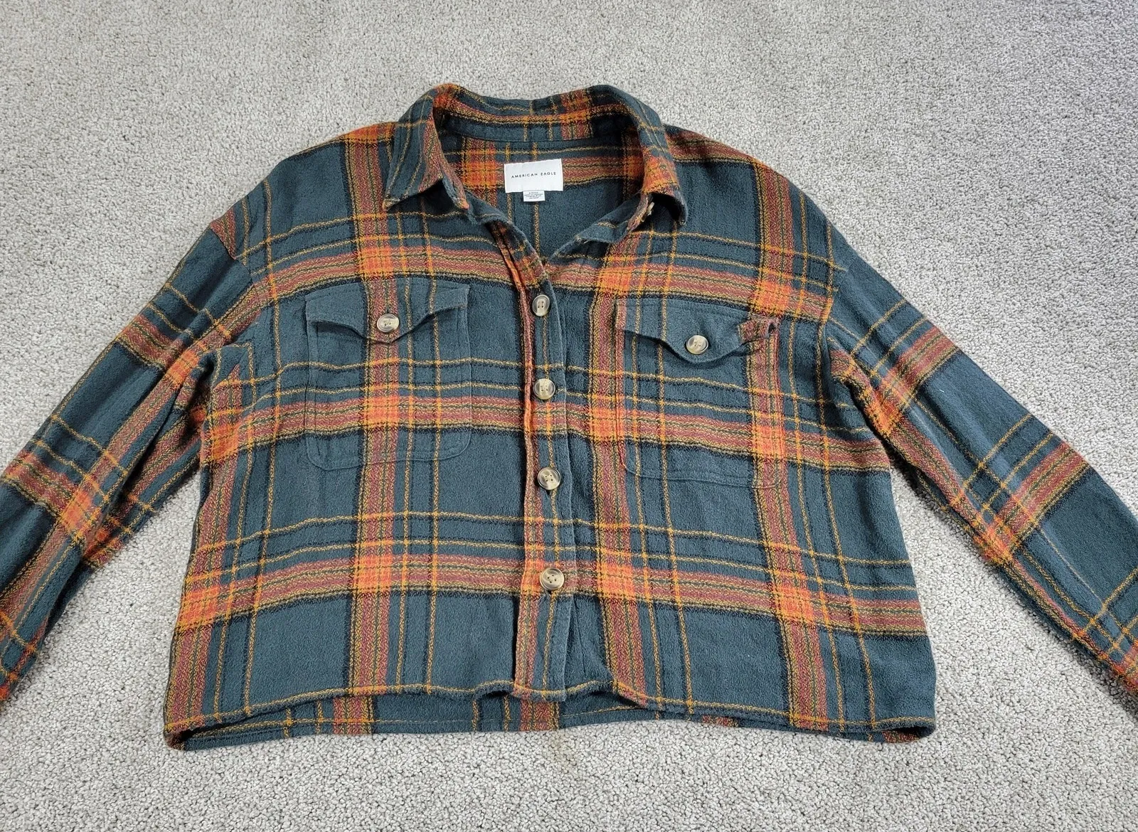 American Eagle Women Cropped Tartan Shirt S Forest Green long sleeve Boxy Fit Measurements: 23" Pit... Show more