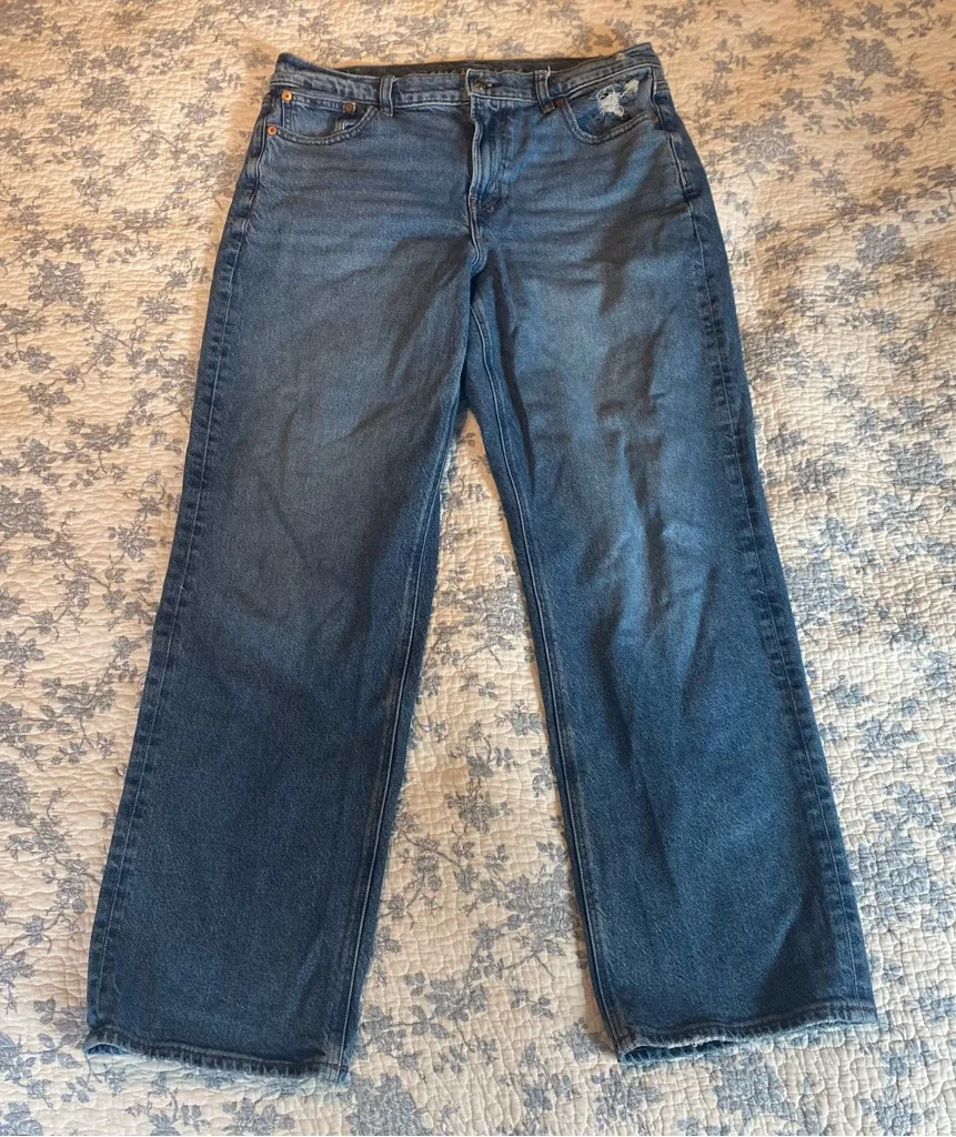 This high-rise relaxed straight leg jean is part of the American Eagle collab with Maddie and Kenzie... Show more