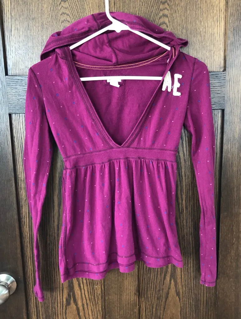 American Eagle Y2k babydoll deep v neck hoodie - XS Purple - $55 - From Stephanie