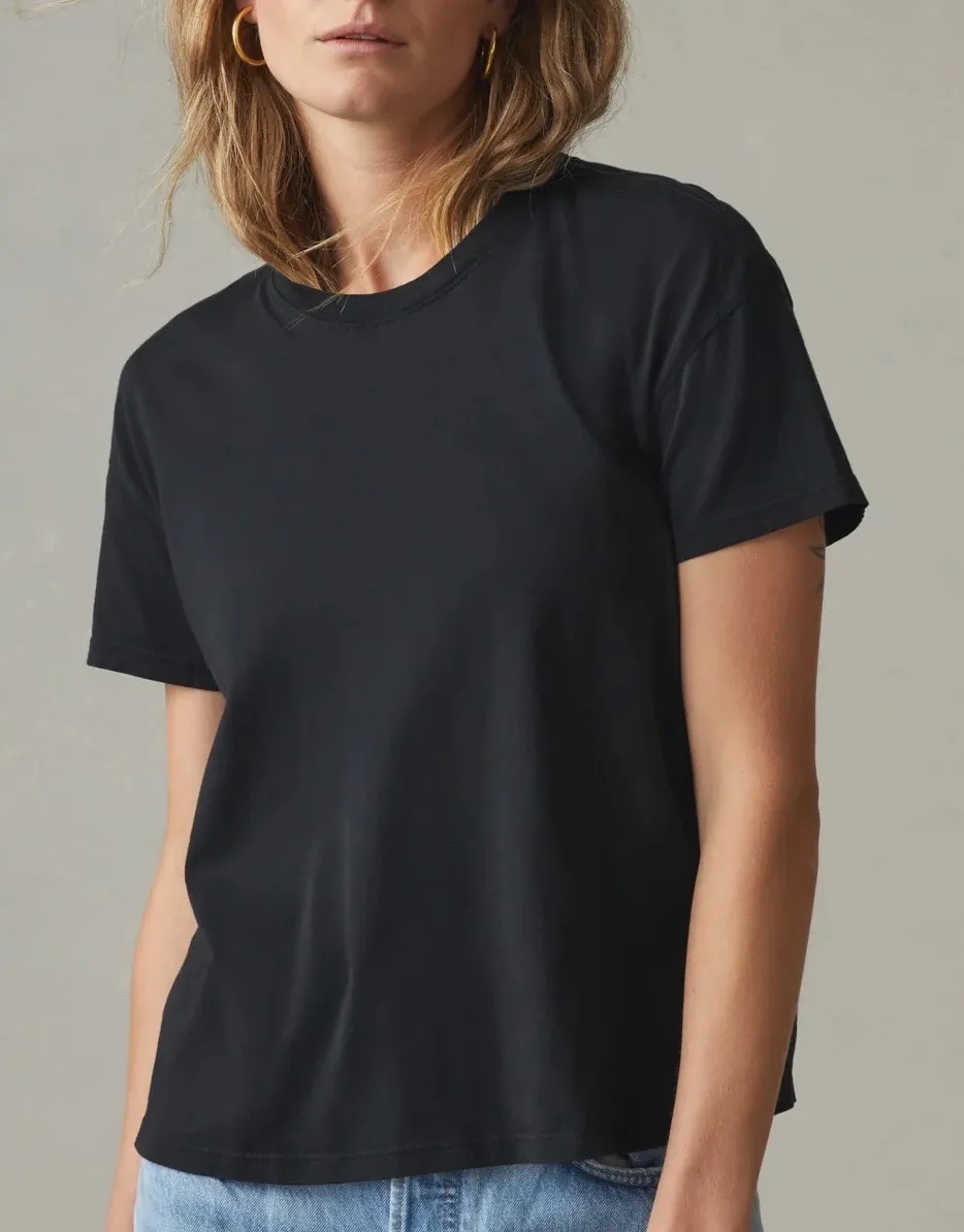 American Giant classic black crew neck t-shirt. Short sleeves create a timeless silhouette perfect f... Show more