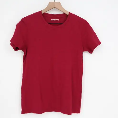 AMERICAN GIANT crew neck t-shirt in red. This classic short sleeve tee offers a comfortable and versatile addition to any wardrobe. Its simple silhouette makes it perfect for layering or wearing on its own. Ideal for casual outings or everyday wear. Measurements: • Chest: 18 in • Length: 25 in • Size: S Type: T-Shirt Department: Women Style: Basic Material: Cotton Neckline: Crew Neck Sleeve Length: Short Sleeve Sleeve Type: Casual Sleeve Pattern: Solid Features: Stretch Fit: Regular Fabric Type: Jersey Occasion: Casual Closure: Pullover Season: Summer, Spring Garment Care: Machine Washable Keywords: American Giant, red t-shirt, crew neck, short sleeve, made in usa, women's apparel, casual wear, basic tee, wardrobe staple, everyday top, layering piece, comfortable All orders are shipped the same business day or the next business day. Thank you for supporting my small business.
