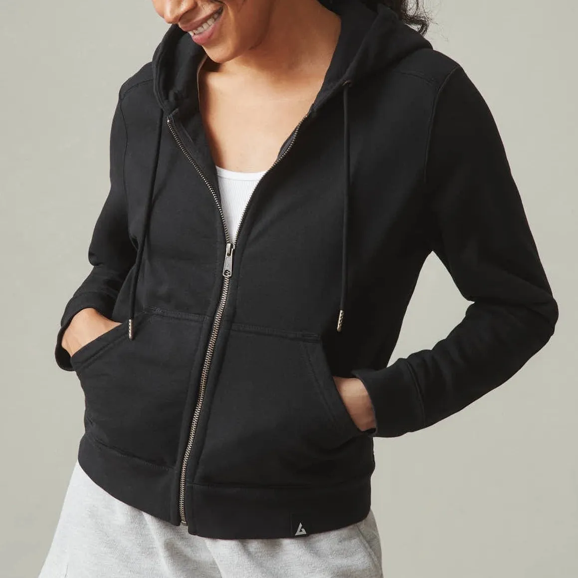 American Giant full zip hoodie in black. This classic hooded sweatshirt offers a comfortable and ver... Show more