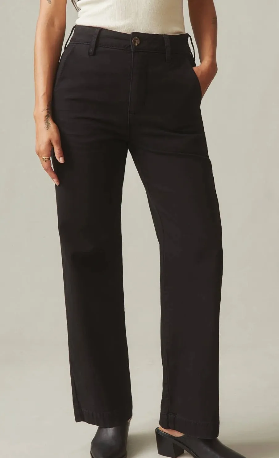Measurements: • Waist: 14.5 in • Rise: 12 in • Inseam: 28 in Condition: New without tags Style: Chino Department: Women Material: Cotton, Spandex Leg Style: Wide-Leg Type: Pants Fabric Type: Twill Features: Pockets, stretch, zipper/button closure, back patch pockets, belt loops Closure: Zip, Button Pattern: Solid Inseam: 28 in Fit: Regular Keywords: American, made in USA, chino, neutral, basic, uniform, workwear, office, minimalist, staple, classic, functional All measurements are approximate. Orders are shipped out within 1 business day. My items come from a smoke-free, but cat-friendly home. All items are kept separate. Color can vary due to computer monitor settings.