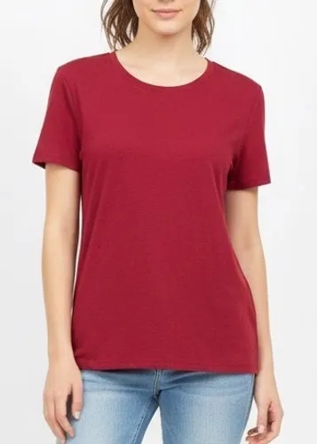 A classic crew neck t shirt in a rich red hue. This versatile tee offers a comfortable fit and a tim... Show more