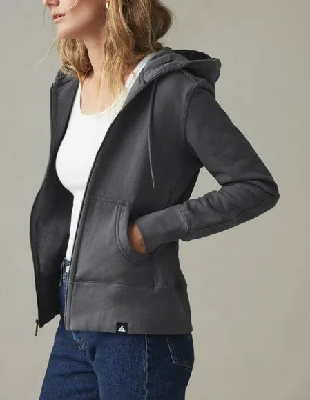 Wrap yourself in ultimate comfort with this American Giant full zip hoodie built to last with custom heavyweight fleece. Side-panels to provide mobility with its body-skimming fit. Double-lined hood, custom hardware, and reinforced elbow patches to protect against wear. The classic full-zip design and spacious kangaroo pockets make it your go-to piece for effortless layering and everyday ease. Measurements: • Chest: 22.5 in • Length: 26 in • Size: XL *Measurements are taken by hand and may vary slightly. Style: Full Zip Department: Women Type: Hoodie Features: Pockets, Hooded Performance/Activity: Gym & Training, Hiking, Running & Jogging, Activewear Fit: Regular Occasion: Casual, Activewear Keywords: American Giant, full zip hoodie, sweatshirt, gray, cotton, XL, made in USA, fleece lined, kangaroo pocket, casual wear, loungewear, layering piece, classic style