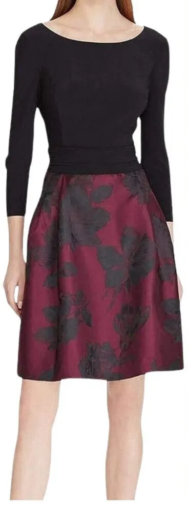 AMERICAN LIVING Fit & Flare Layered Look Dress Top layer is stretch jersey, back zipper; ruched at waist; bottom is jacquard woven flared skirt; 100% Polyester Tag Size: 10 Condition: NWOT Approximate Measurements: Armpit to armpit 19" Length 37"