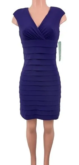 NWT American Living Purple Sheath Dress Ruched Fitted Size 2 Flattering fit, zip up back with hook... Show more