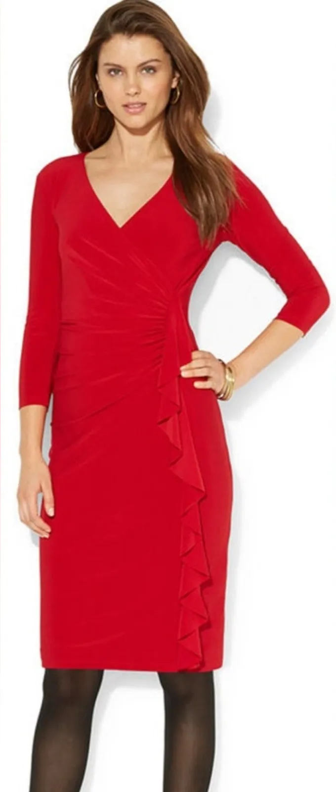 American Living Dress Size: 2 Color: Red Pre-Owned with no stains or tears * V cross neck * Ruffle on side * Pull On * 3/4 sleeves Measurements laying flat: Pit to Pit: 16 1/2" Shoulders: 15" Waist: 13" Length from back of neck: 37 1/2" Keywords: American Living dress, red dress, 3/4 sleeve dress, sheath dress, cocktail dress, party dress, career dress, ruched dress, midi dress, knee length dress, work dress, formal dress, event dress Orders ship next business day. Smoke free home.
