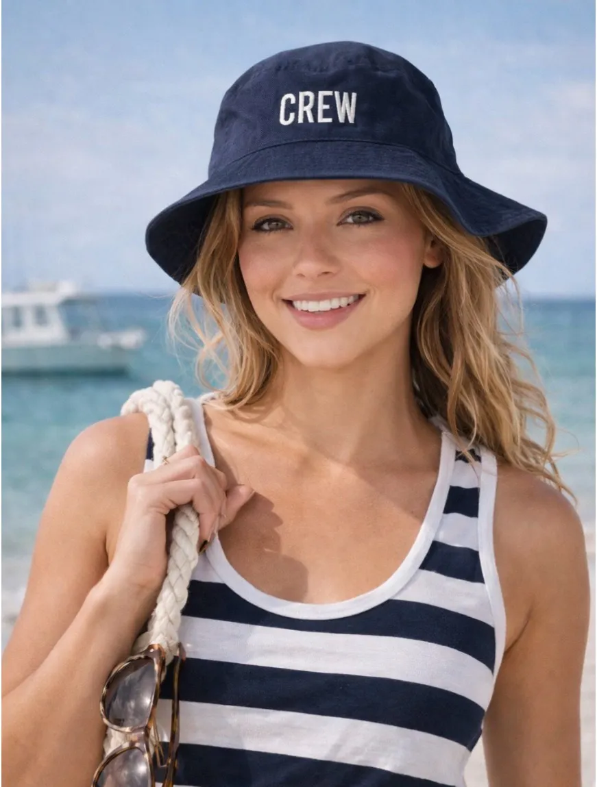 Read before purchasing! I now live overseas and this item is with me. I visit the US once a month though, so before purchasing, message or comment letting me know you'd like to purchase and I will inform you when Im in the US/when to purchase to avoid canceled orders. This is a bucket hat that says “crew”. It has only been worn a few times from American Needle. • American Needle • Size small • 100% cotton • Made in Bangladesh Disclaimer: first image created with AI
