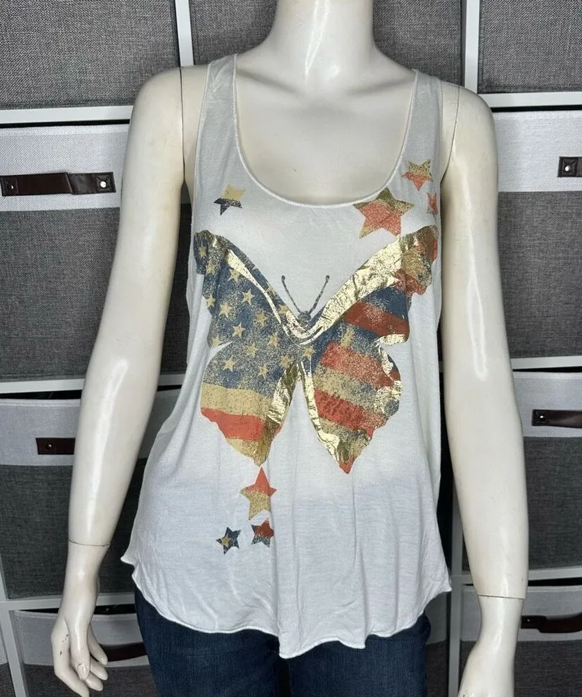VGUC. American Rag American Flag Butterfly With Metallic Gold Details Racerback Tank Size Juniors XL... Show more