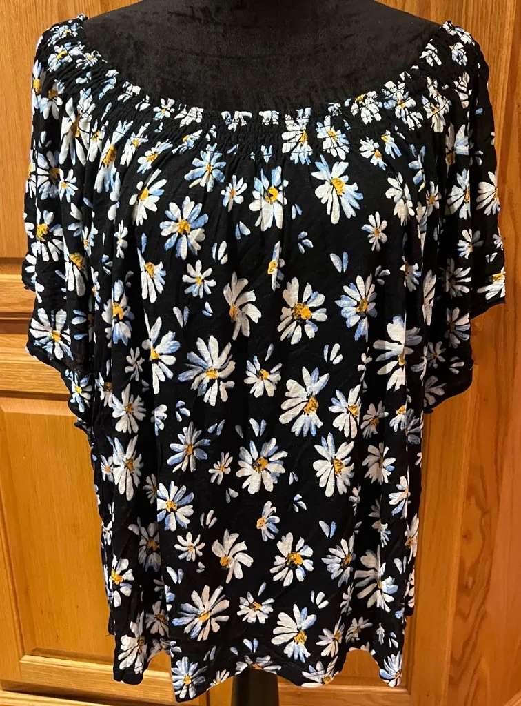 American Rag Daisy Print Off-the-Shoulder Smocked Peasant Blouse Size 1X Features an elasticized ne... Show more