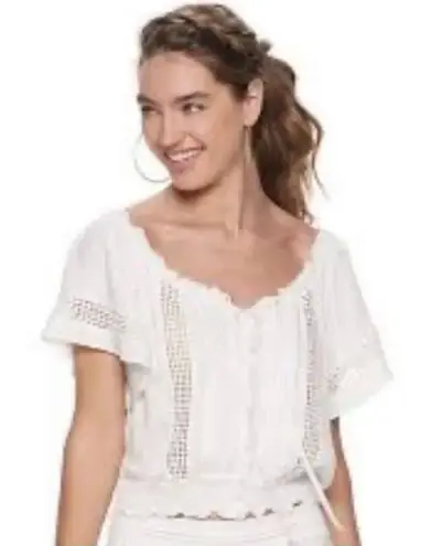 American Rag Cie Short flutter Sleeve White Crop present Top Size Small crochet accents, elastic wai... Show more