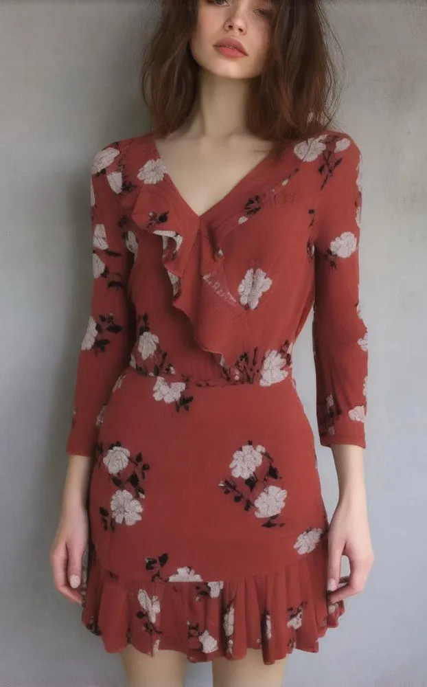 Excellent used condition American Rag Floral Faux Wrap Mini Dress Red Size Small Long sleeves #wrap... Show more