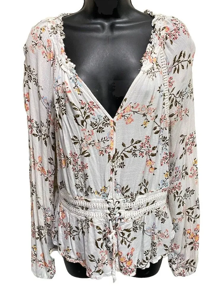 This American Rag Cie blouse is a must-have for any wardrobe. The ivory floral pattern is complement... Show more