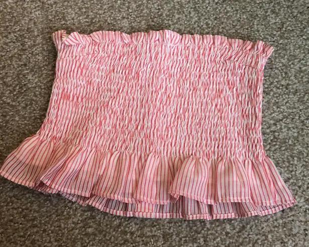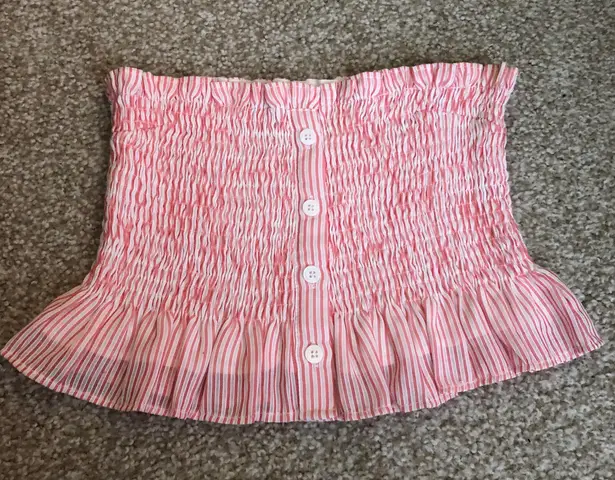 American threads strapless top with light orange/pink and white stripes with button front super cute... Show more