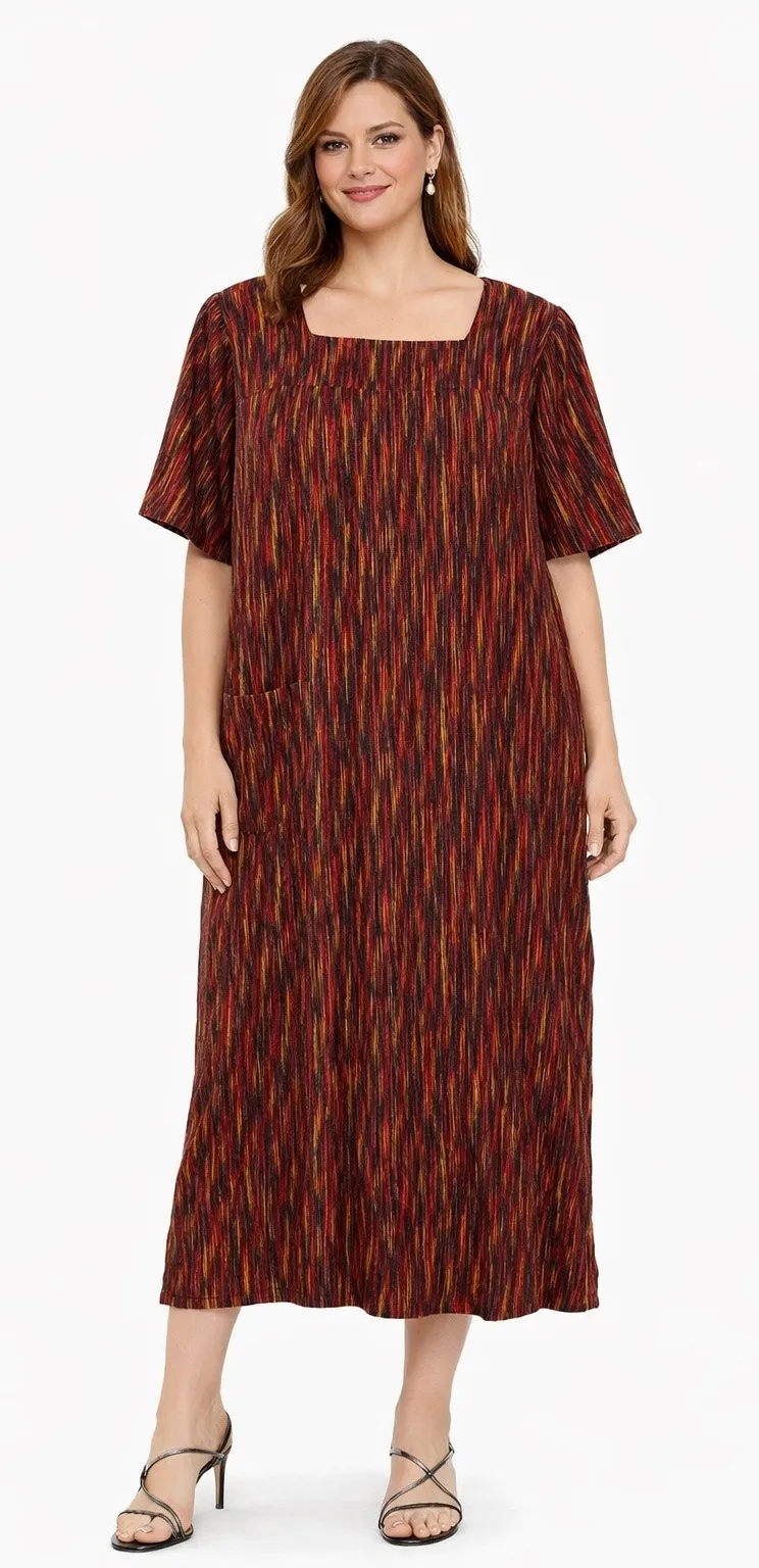 Vintage handmade 1970s dress crafted from rich ribbed velvet chenille fabric with vertical multicolo... Show more