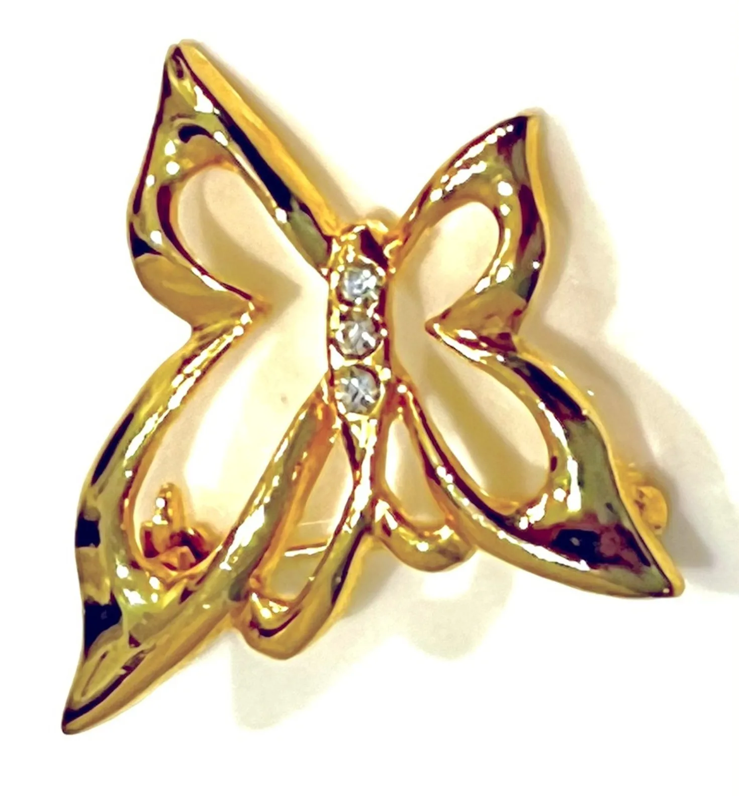 You Are Looking To Buy: American Vintage Gold Dip BUTTERFLY BROOCH PIN 1-1/8” Three Rhinestones Fil... Show more