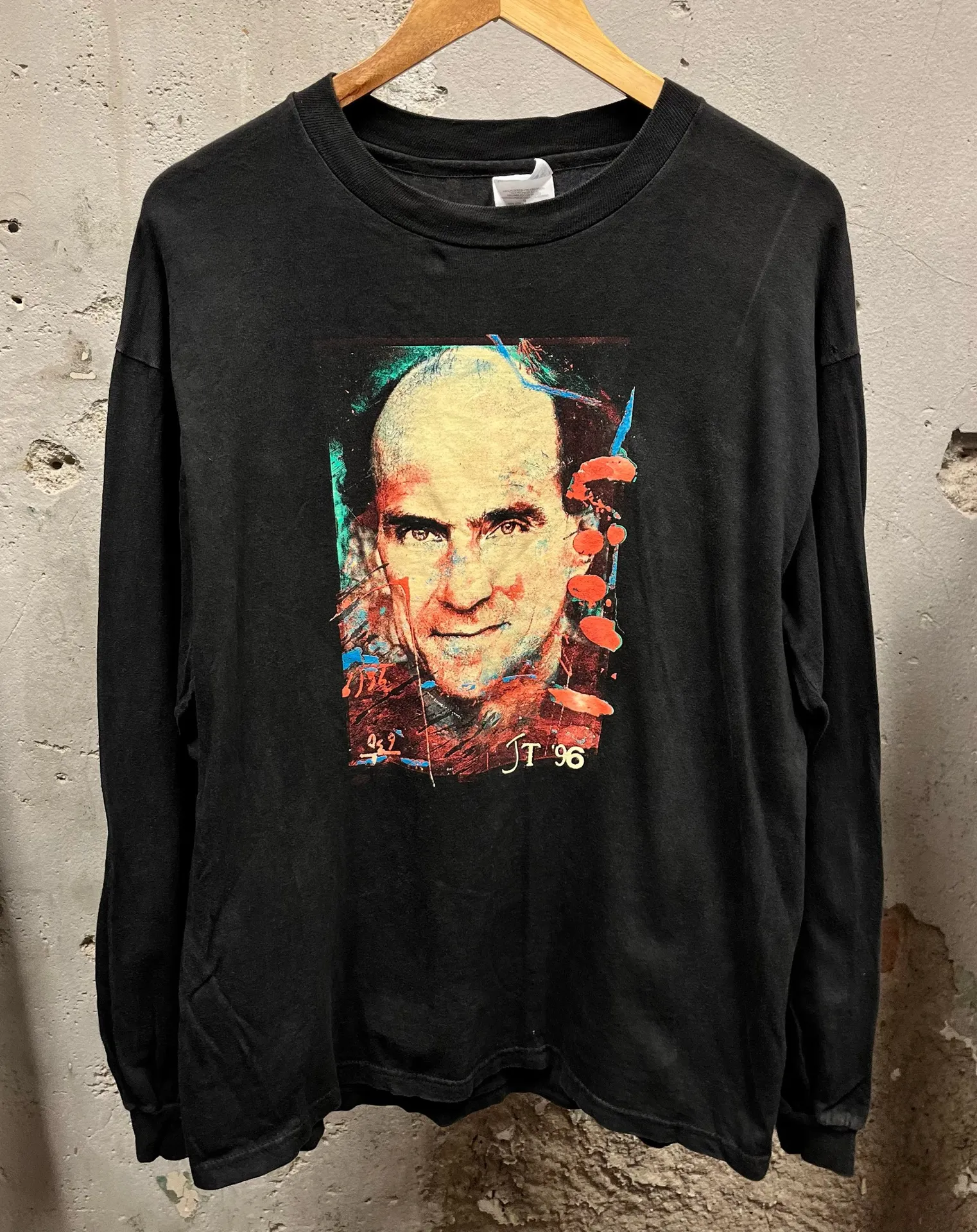 In good condition! Solid black tee with a colorful graphic on the front and back. Tour dates on the back. Has a cut on one sleeve (pictured). USA made. 100% cotton material. Gently used! No other rips, stains, or holes Size Large. Pit to Pit: 21in Shoulder to Hem: 28in Has a cut on the sleeve