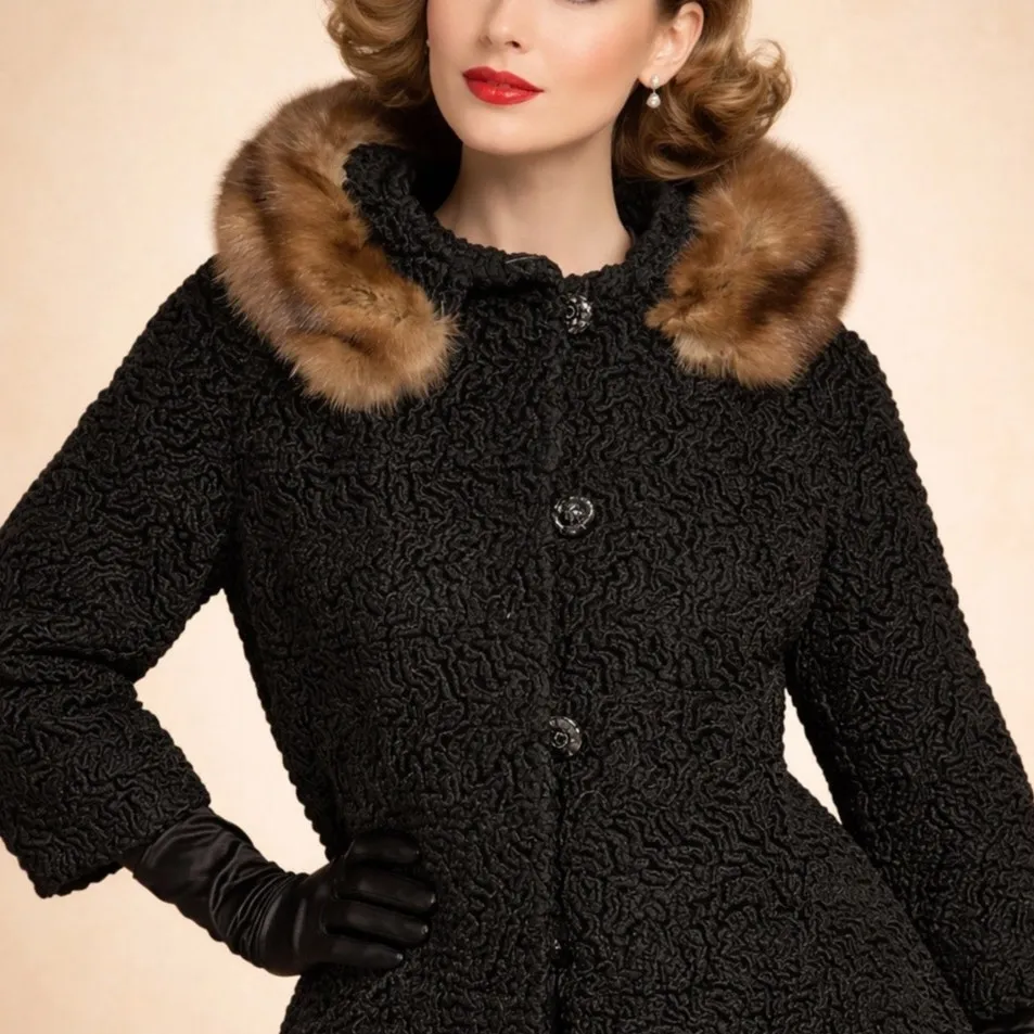 Mid Century Vintage mid-century black cocktail coat dating to the late 1950s to early 1960s. Featur... Show more