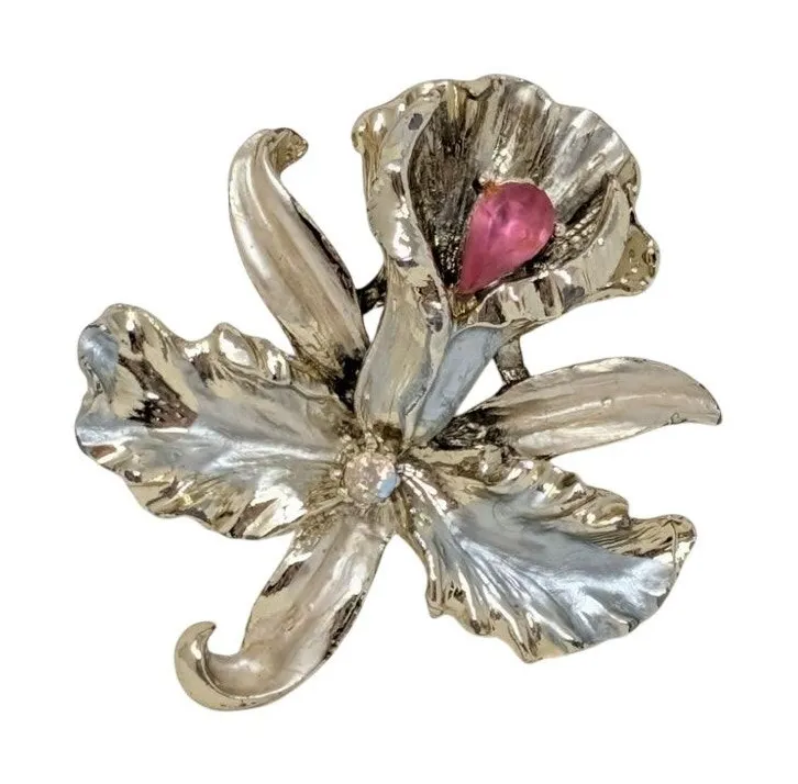 Striking vintage floral brooch featuring an sculptural mid-century design with layered petals, silve... Show more