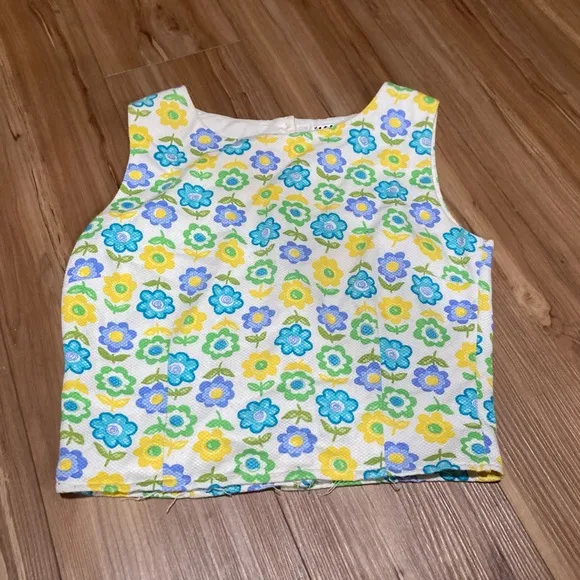 This great floral crop top from the 60/70s has a button back closure and raw edge. This top has an a... Show more