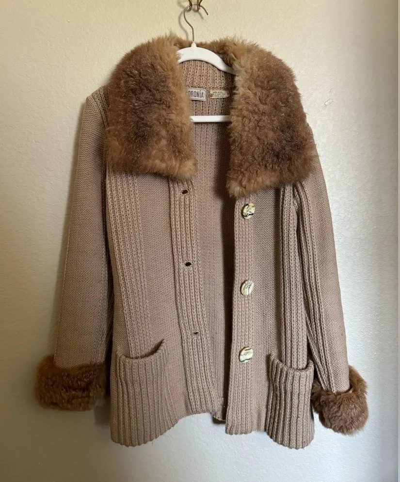 in very good used condition - does have a stain inside the cardigan - size medium fits true to siz... Show more