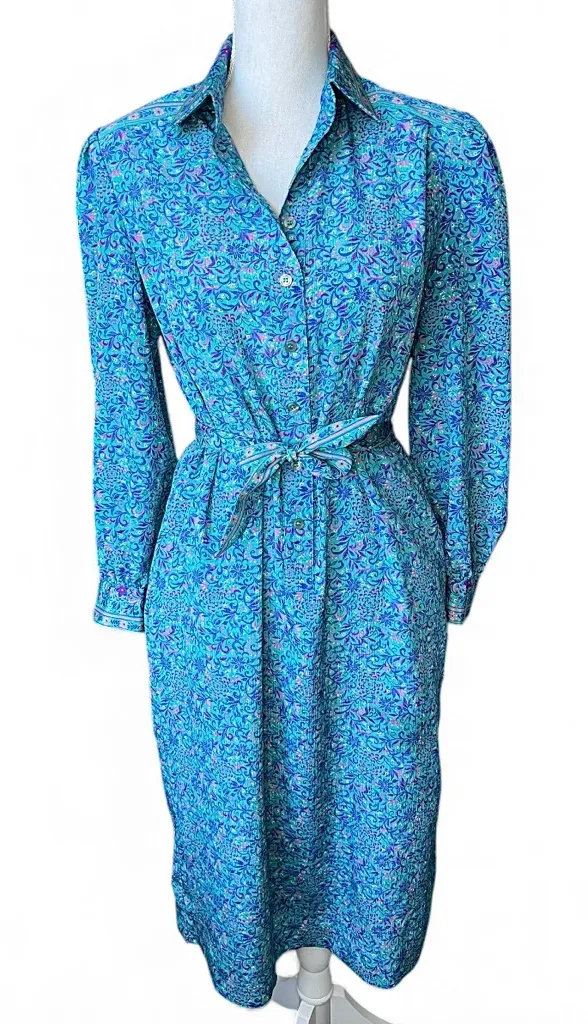 Size 8 Step out in style with this vintage elegant blue floral dress. Perfect for any occasion, thi... Show more
