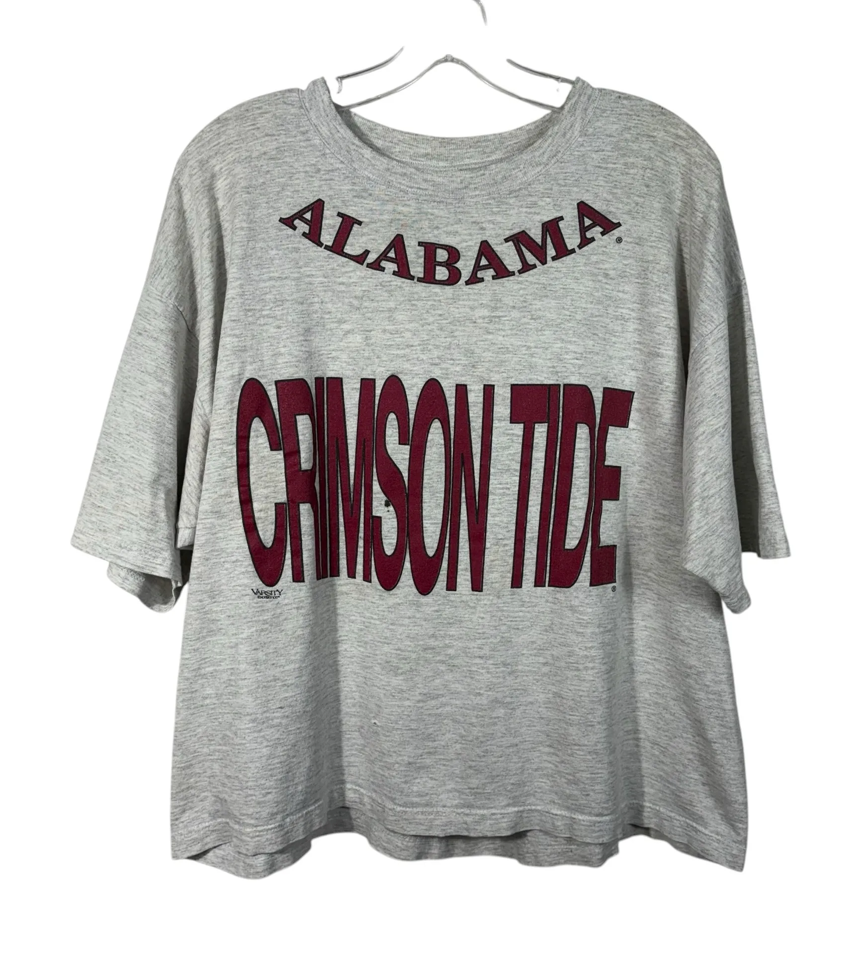 Super cool, retro tee! Great for students and tailgates! Gray tee with a crewneck neckline. Varsity style spellout on the front. Slightly cropped fit. Has some flaws, see all photos. Size Large. Pit to Pit: 23in Shoulder to Hem: 23in Has some spots