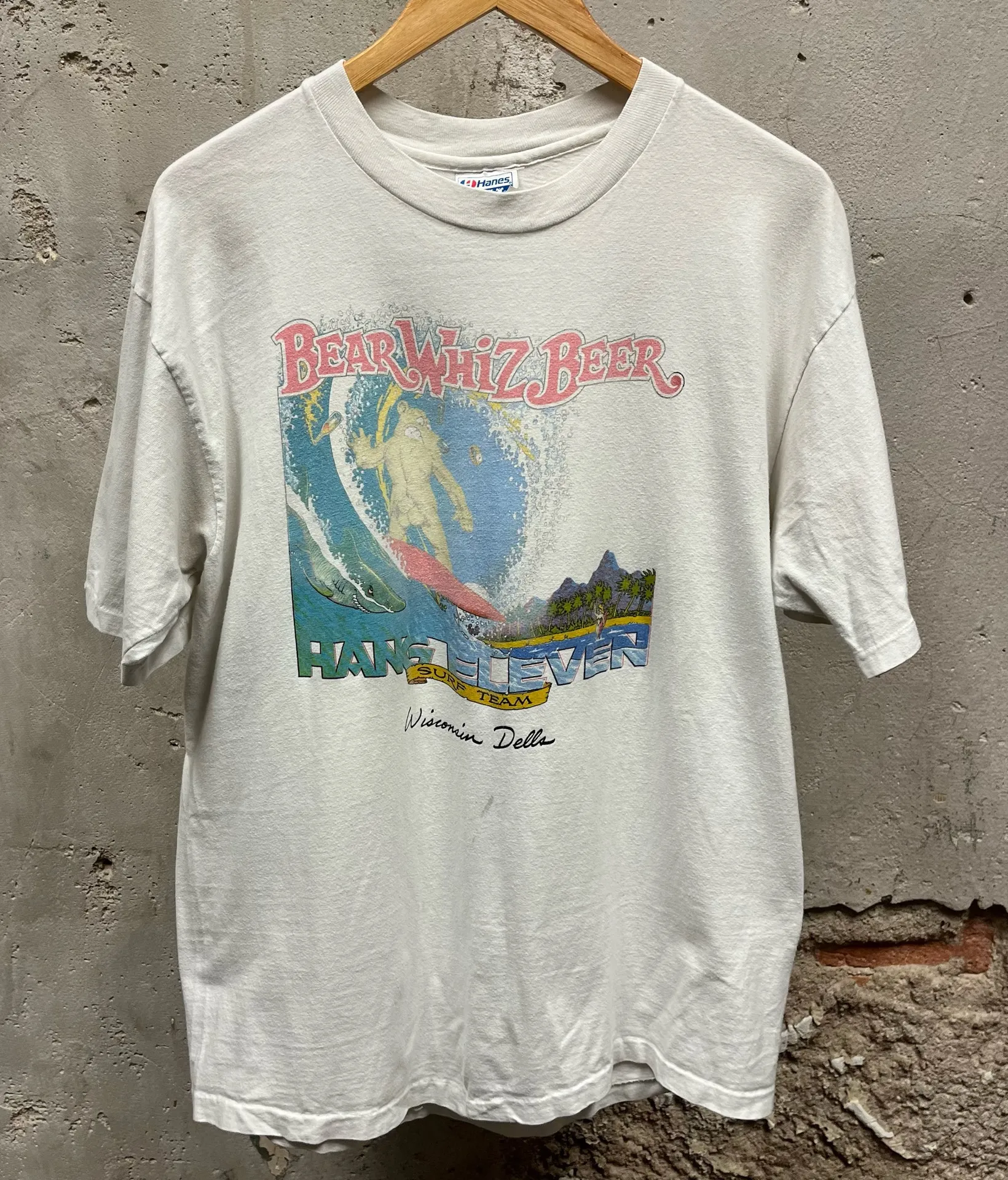 In good condition! Very funny graphic of a bear getting chased by a shark. Single stitch tee. Made i... Show more