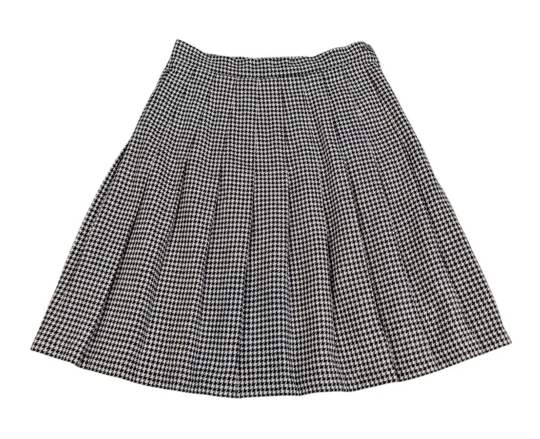 Vintage 90s Houndstooth Wool Skirt | Stephanie Andrews | Black White A-Line Pleated | Size 8 Classi... Show more