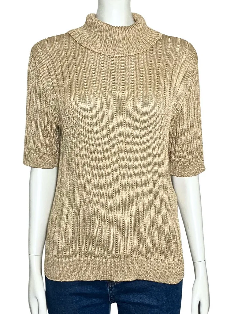 Gold silk blend knit short sleeve turtleneck sweater by Liz Claiborne from the 90s. Classic minima... Show more