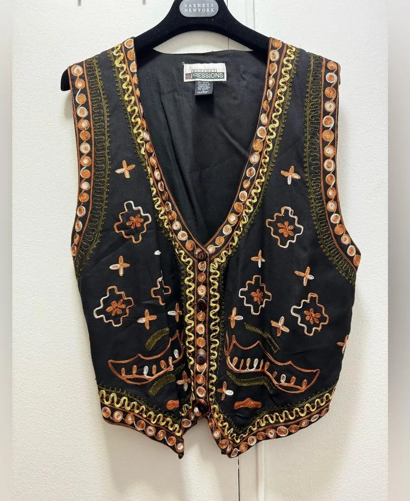 Vintage Body Xpressions Embroidered black and orange vest with a boho touch #festivalvibes Size lar... Show more