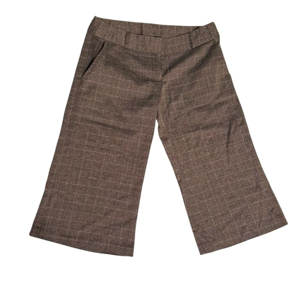 Vintage exact change brown plaid wide-leg long shorts or culottes capri knee length. Reminds me of C... Show more