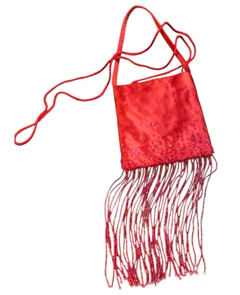 Vintage designer Meg Christopher read beaded evening bag. In amazing condition with beading and sequ... Show more