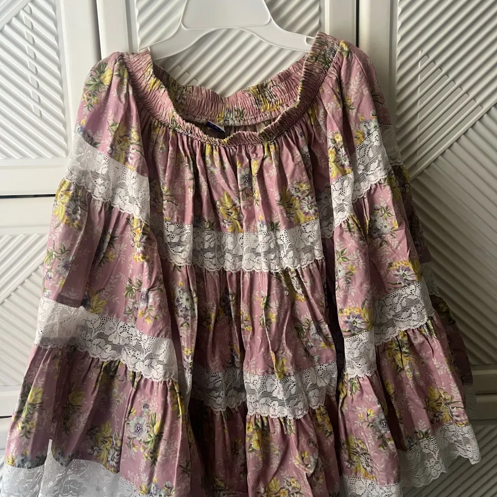 Charming floral skirt with pink and white lace details. Perfect for a feminine touch. Size X-large... Show more