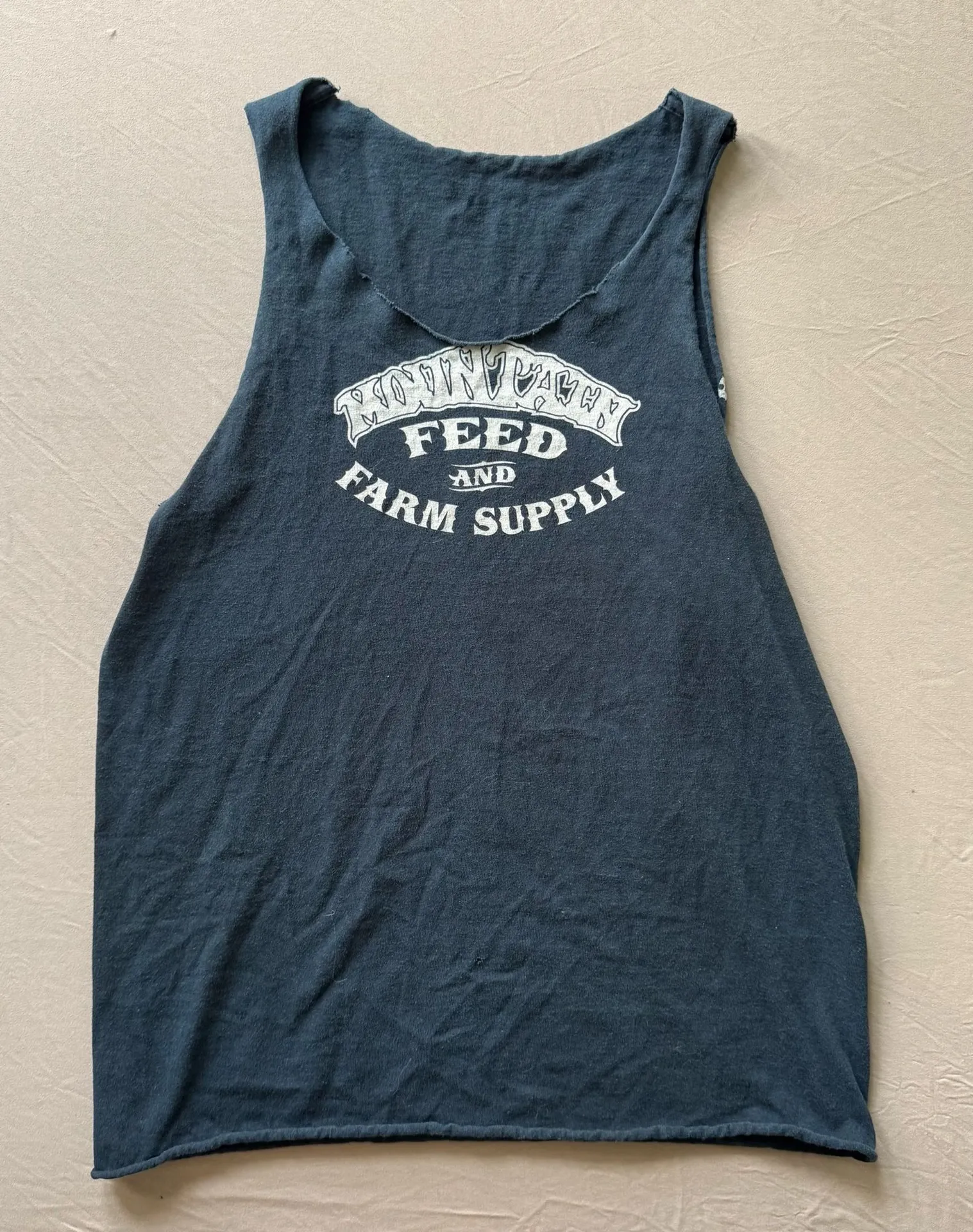 - Black Vintage Muscle Tee with a Scoof neck, raw trims, relaxed fit “Mountain Feed & Farm Supply” spellout on the chest & Tractor Graphic on the back - Size N/A fits like a S-M (18.5” p2p, 18 1/4” hem, 24” length) indie, streetwear, soft boy, street style, early 2000s, urban grunge, hipster, grungy, classic, grunge fashion, skater boy, grunge style, y2k fashion, grunge core, 2010s, alt, rockstar, y2k style, surfer, salted granola, archival, boyband, soulja boy, teenage dirtbag, mid 90s, alternative, archive, edgy, cyber grunge, Farmwear, rugged, rustic, rancher, cowboy, western, country, gothic, american pride, mountain core, granola boy, affliction, backcountry, hillbilly, redneck, workwear, garage band, cyber grunge, cyber punk, rock band, indie rock, rock & roll, edgy, heavy metal, e-boy, alt, alternative - condition 7/10 some wear & fading with raw cut hem in good condition