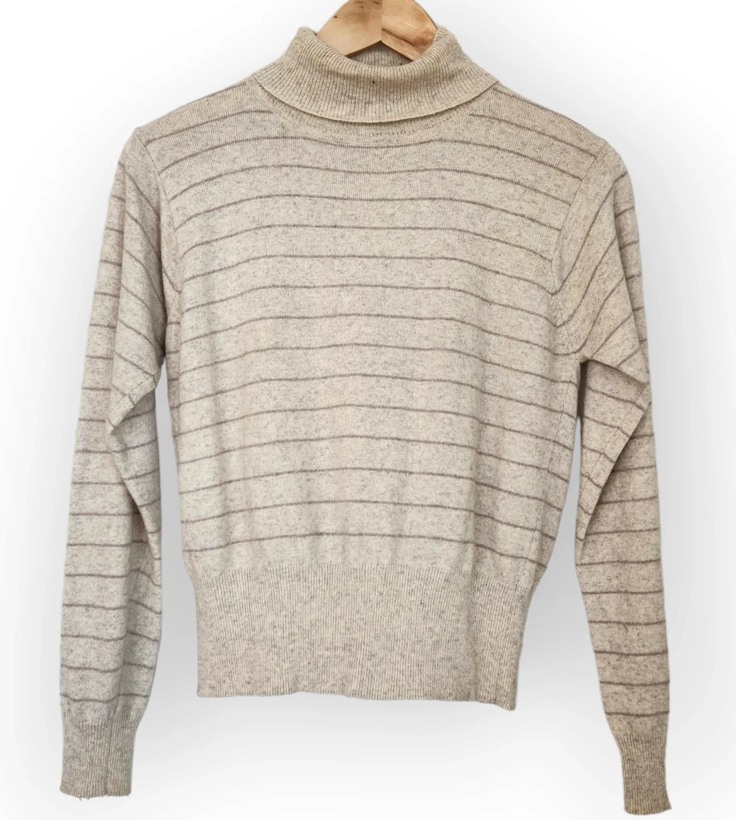 In excellent vintage condition, a cream lilac striped knit turtle neck sweater by Jean Pierre. -cream and lilac stripes -knit, turtle neck sweater Tagged size S 16.5 inch shoulder to shoulder 18 inch pit to pit 20 inch length 19 inch sleeve length from pit (measurements are approximate) academia light academia cozy cozycore preppy minimalist fall winter casual basic minimalist minimalism