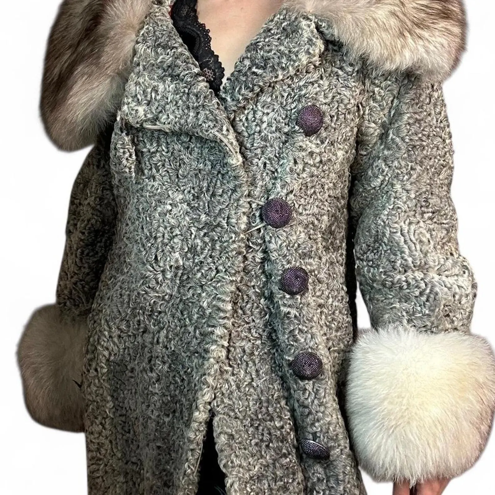 Add a touch of groovy glamour to your wardrobe with this stunning vintage Penny Lane silver Persian lamb coat! This unique piece is sure to turn heads and keep you cozy. Features: - Genuine Persian lamb fur in a shimmering silver hue - Classic Penny Lane design with a flattering silhouette - Hook and eye closures for a seamless look - Fully lined for added warmth and comfort Condition: Vintage, but in excellent condition. This coat is a true statement piece. Don't miss out on owning a piece of fashion history! Please feel free to ask any questions. Happy to provide additional photos or measurements upon request.