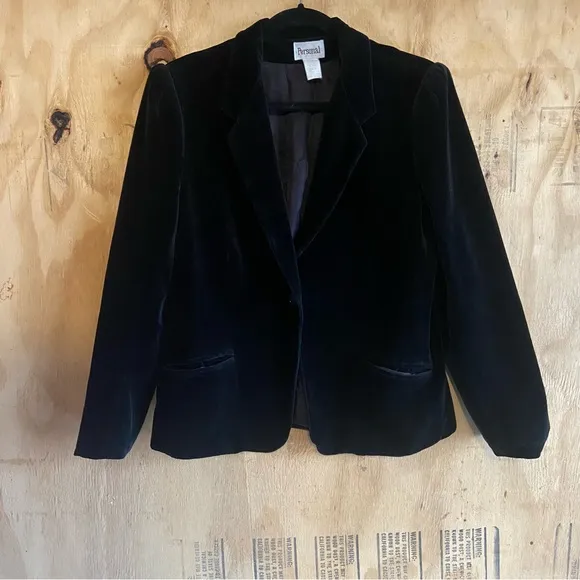 Vintage Personal Black Velvet One Button Shawl Collar Blazer No size tag. Fits like a medium. Bust... Show more