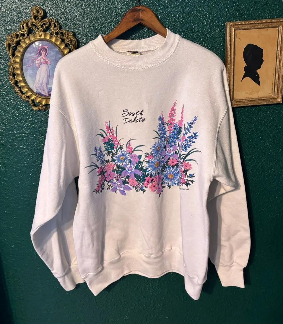 Vintage South Dakota AOP Flower Crewneck Size Large White - $24 - From Madison