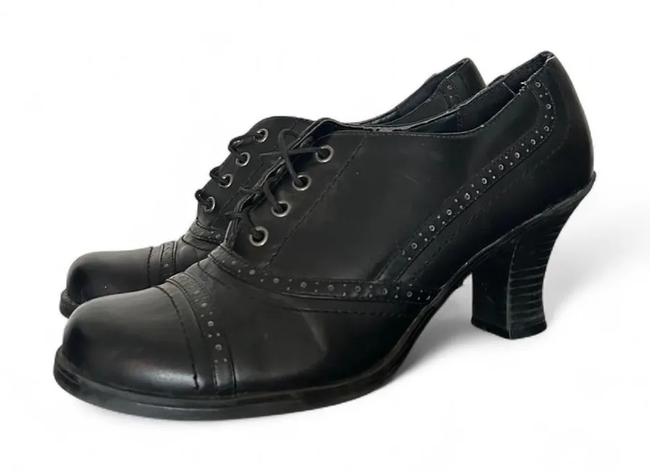 vintage Y2K 2000s retro Black faux leather lace-up oxfords with a heel #goth #punk Size 8.5 Brand i... Show more