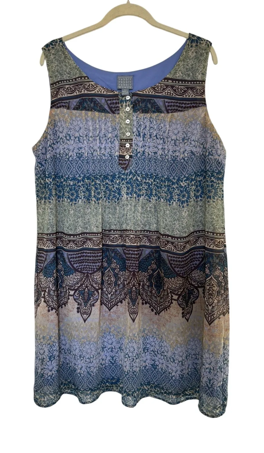 Vintage Rabbit Rabbit Rabbit Boho Dress Size 18W Lightweight material 100% polyester Blue linin... Show more
