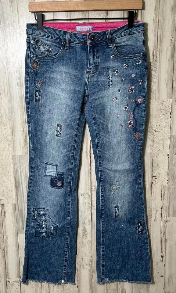 Zana Di Vintage Y2K Floral Patchwork Low Rise Flare Jeans Womens Size 7/30 - great preowned conditi... Show more