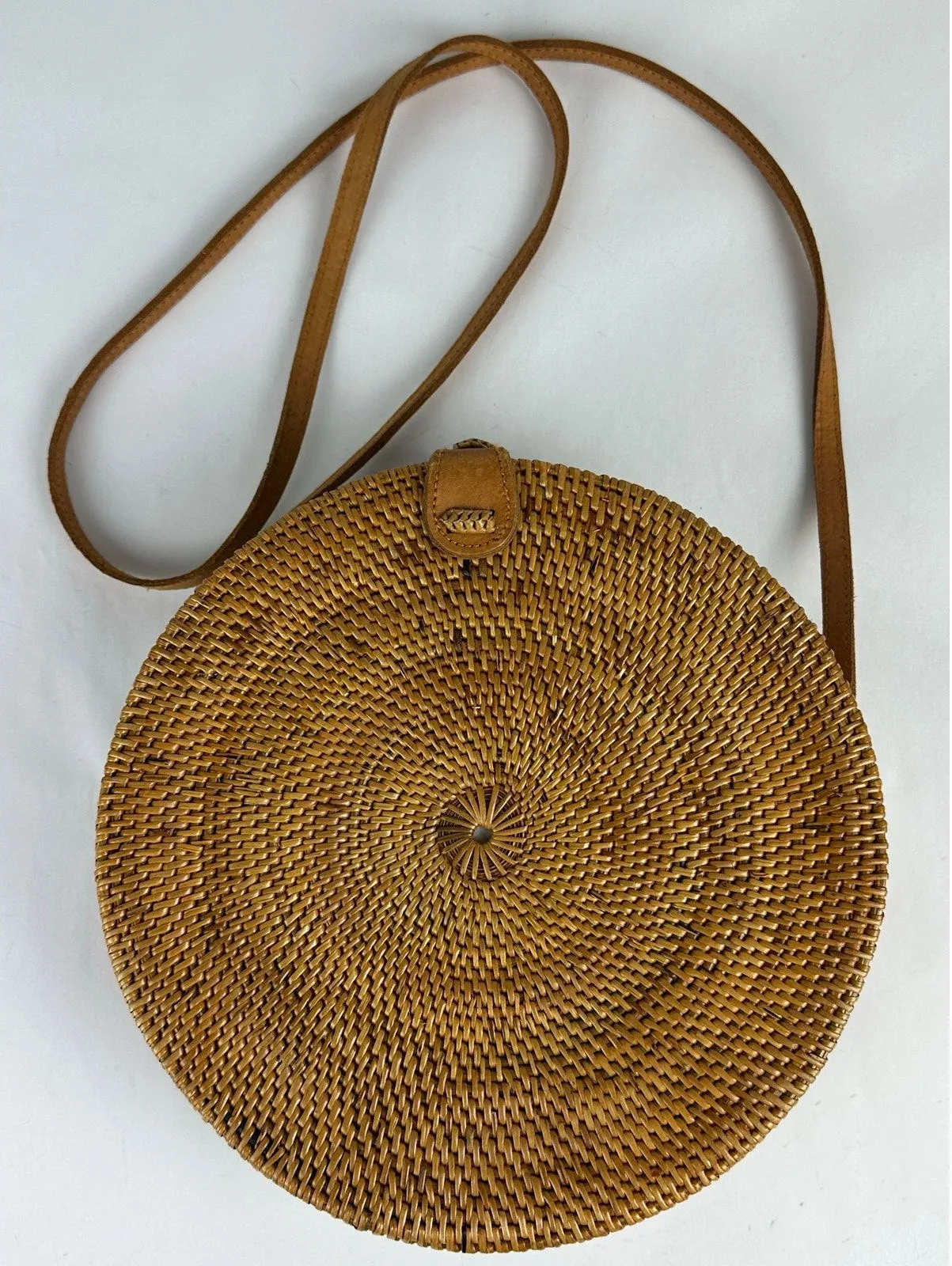 Amerii Round Rattan Woven Crossbody Bag Purse Boho Hippie Cottage NWOT Bali Brown - $40 - From Jessica