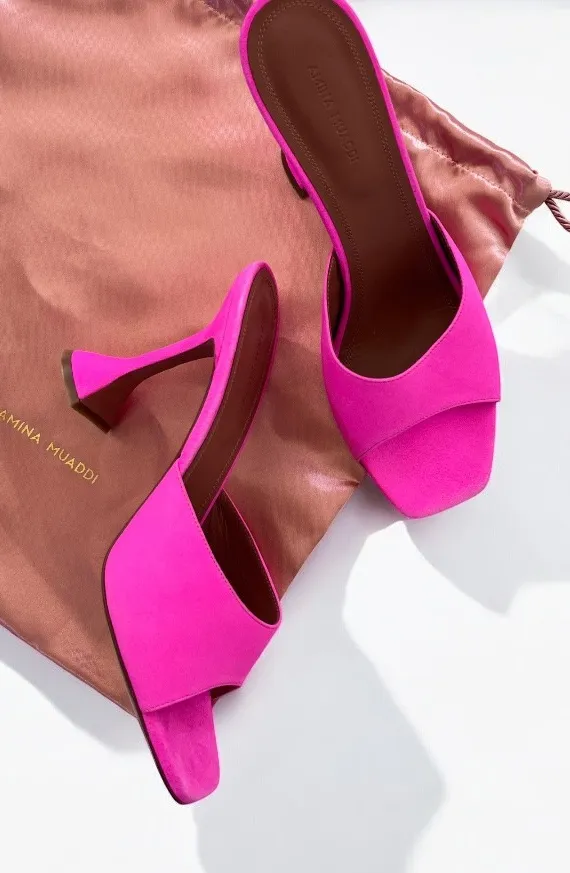 AMINA MUADDI Lupita Suede Slipper Mule in Fluo Pink Size (EU): 42 UK 9.5 US 12 Color Fluo Pink Pre... Show more